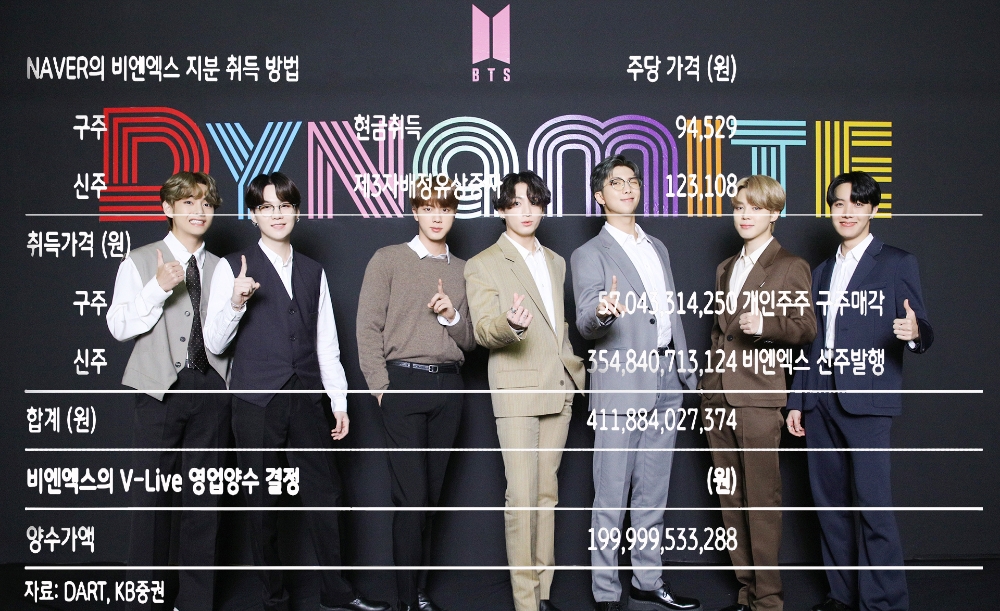 양사는 27일 이사회를 열어 빅히트의 k팝 플랫폼 '위버스'를 운영하는 자회사 benx의 지분 49%를 네이버에 넘기기로 합의했다고 밝혔다.